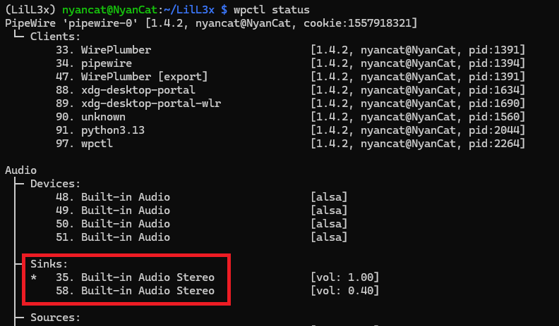 wpctl inspectto make sure it’s the right sound card (seeed-2mic-voicecard) - Set it as default with